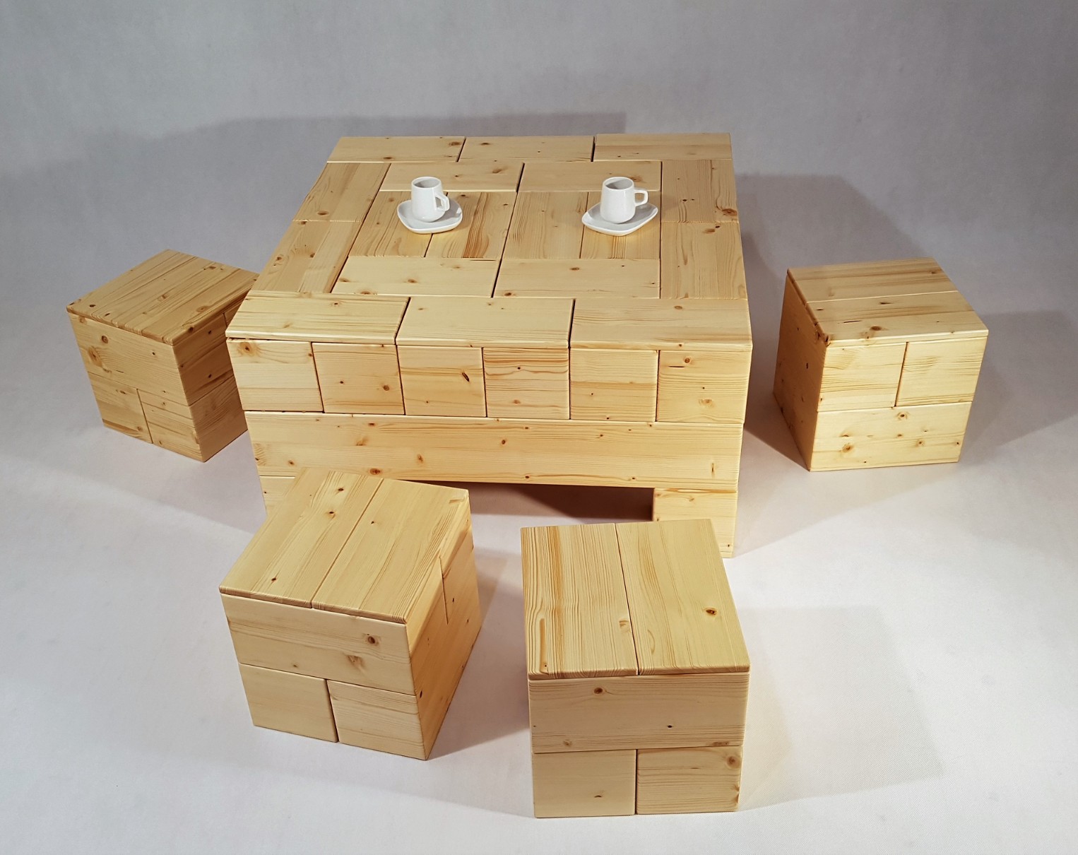 Dělící příčky do kanceláří, barové pulty, konferenční stolky, výstavní stojany nebo pro děti dřevěný robot, letadlo či žirafa. Vše postavíš z dřevěné cihly. Nábytek z dřevěné cihly roste a mění se tak, jak Ty potřebuješ. "Stěhuješ se do většího? Proto, ale nemusíš kupovat větší konferák...jednoduše přidáš pár cihel a máš vystaráno." Chceme, aby se zákazník díval na dřevěnou cihlu jako na investici, která kromě okamžité užitné hodnoty vrací klientovi vložené prostředky tím déle, čím déle jí klient používá a to právě svou modularitou a možností přestavování již nepotřebného či okoukaného nábytku na nový.