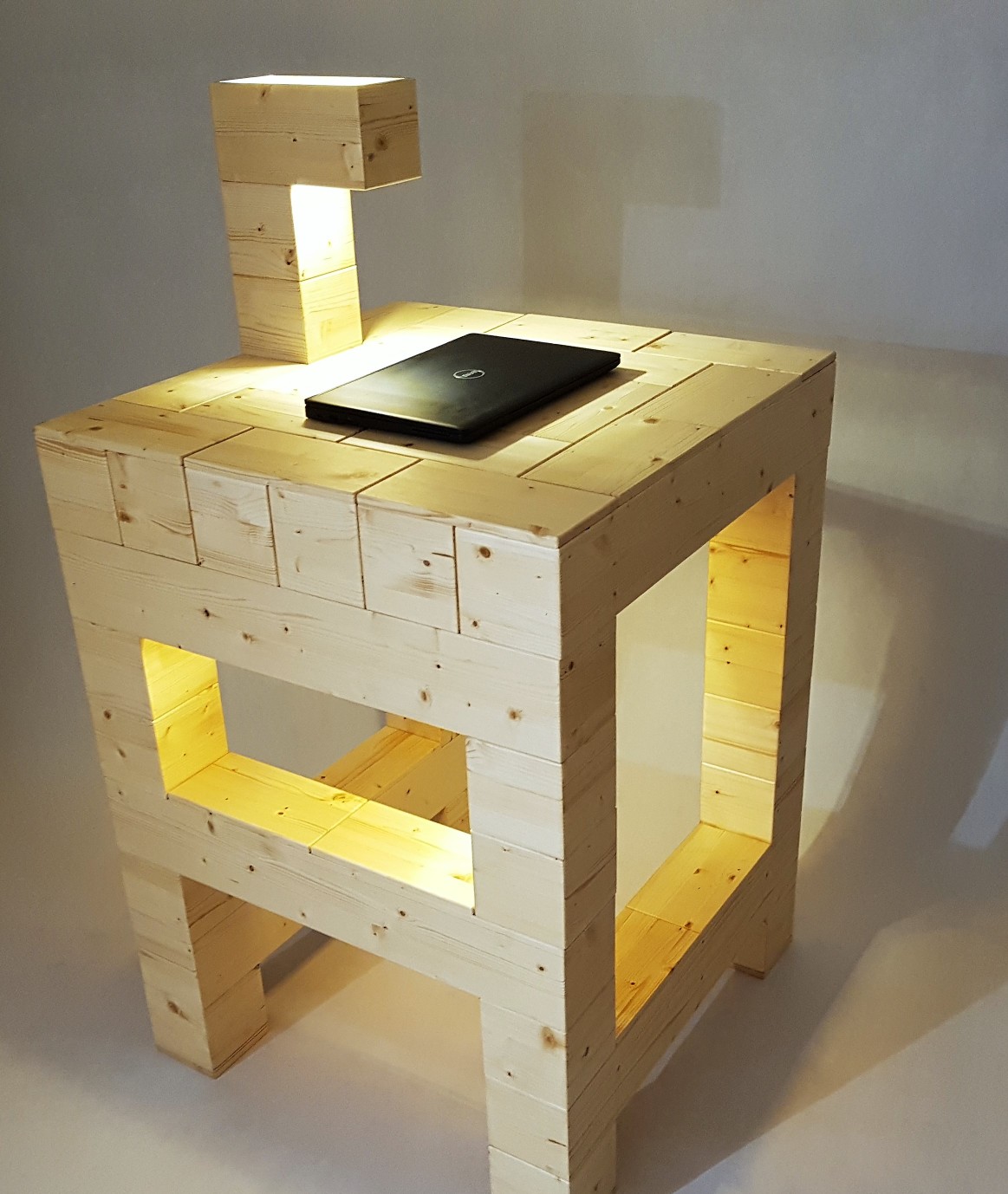 Dřevěná cihla je základním modulem jednoduchého, rozebíratelného stavebnicového systému, pro tvorbu reálného nábytku, ale i jiných dřevěných konstrukcí.
